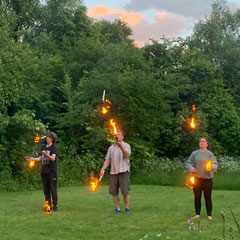 There will also be a fire show, a mass fire club-swinging routine, and the lighting of a fire sculpture created on the weekend, by you!